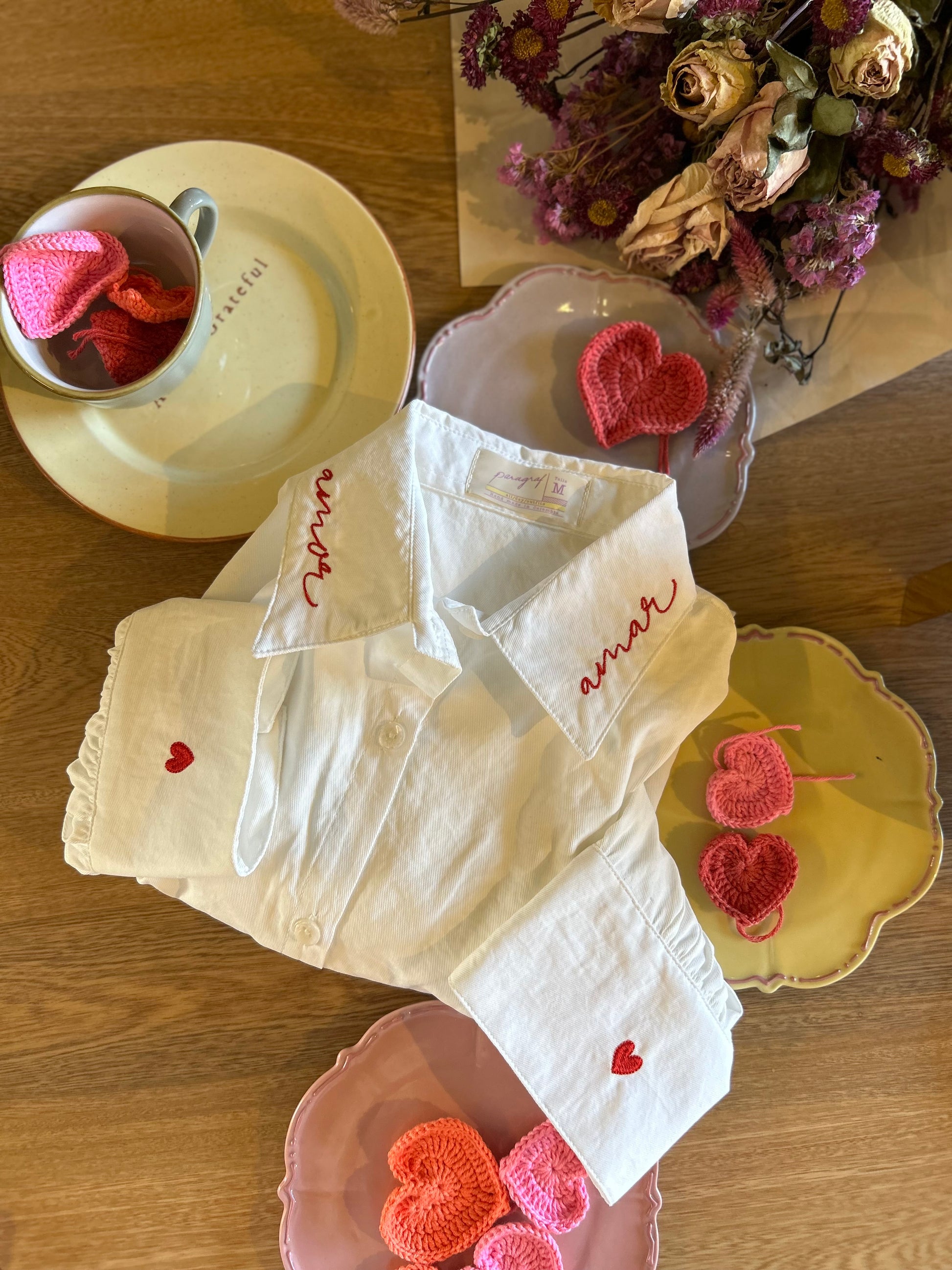 CAMISA MANGA LARGA BORDADA AMOR